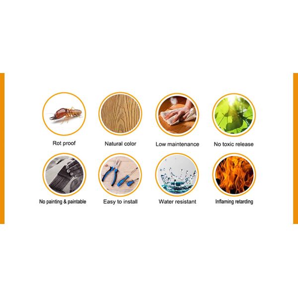 I Durability and insect free: 100% virgin PVC new raw material and environment conservationuse the technology of co-extrusion, keep the nature wood texture for more than 20 years of usage.