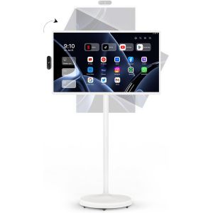 The Forgos portable TV is also cordless, freeing you from the need for power outlets and cables. With a removable charging dock and a built-in 108Wh lithium-ion battery that can last up to 6 hours, this smart touch screen truly is a mobile entertainment center. Five discrete wheels at the base make it easy to glide from room to room or even out on the patio.